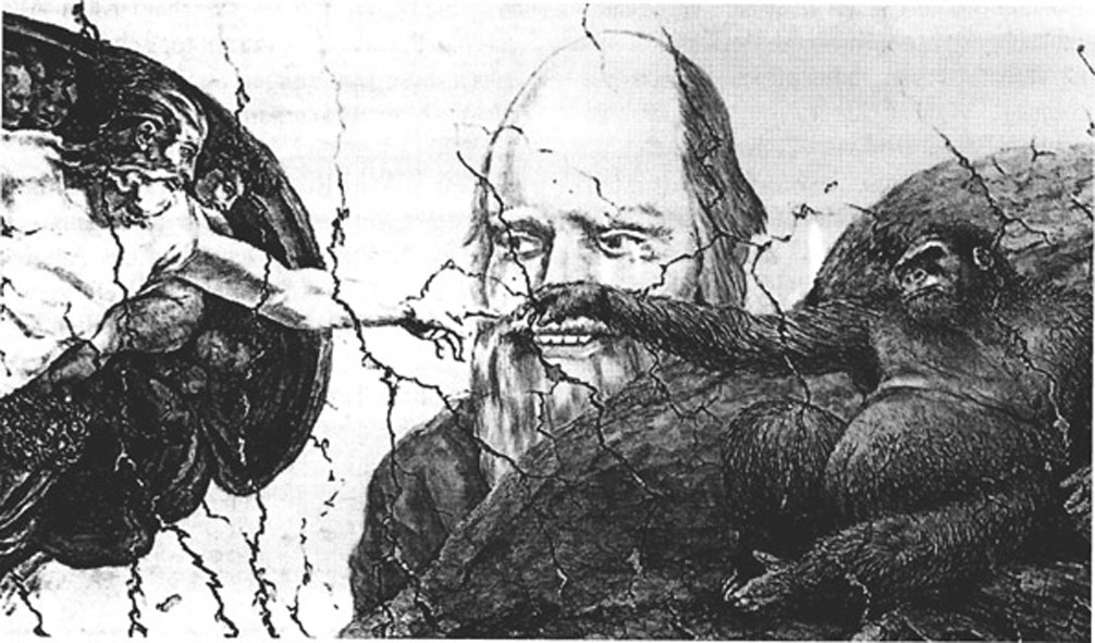 CDS Kap. I-01, Abb.2 Darwin hat Gott ein Schnippchen geschlagen: der Affe als Krone der Schöpfung!