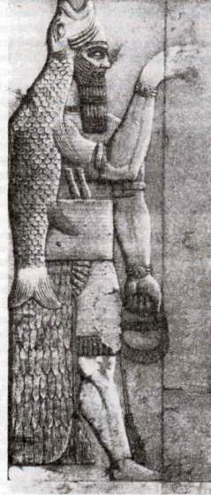 Chronik der Schöpfung - Kapitel: X-05, Abb.40a "Fischgott" Oannes. Ea/Enki in der "Gala-Uniform" der nibiruanischen "Navy". Ea bedeute wörtlich: dessen Heim das Wasser ist.