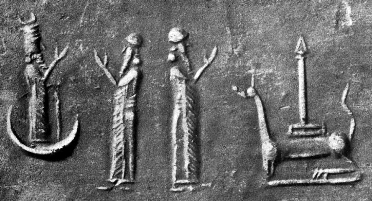 Mondgott Sin, ein anderer verehrt noch die Symbole Marduks,