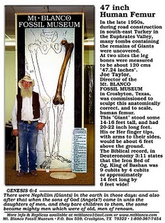 Chronik der Schöpfung - Kapitel: XI-01, Abb.85 Vermeintlicher Riesenknochen im Mt. Blanco-Fossil-Museum. Zum Lesen der Geschichte siehe http://www.omniology.com/Joe+GiantLeg.html